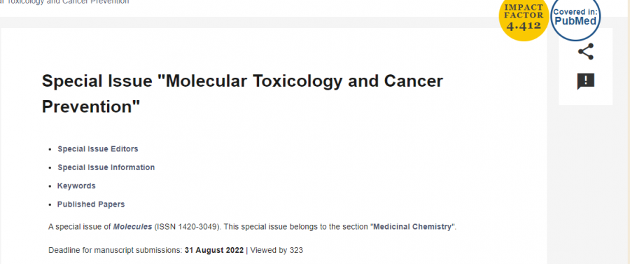 SCI期刊Molecules【IF:4.412】征稿—聚焦分子毒理学、癌症治疗