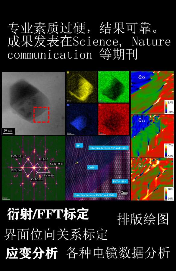 本人为海外博士毕业生, 科研方向为透射电镜、扫描透射电镜在材料科学中应用, 业余时间开个网店 。在Science, Nature Communications, Energy & Environmental Science, Advanced Functional Materials, Advanced Science, Material Today Physics, Nano Energy, Small, Material Science and engineering A等期刊发表一作、共同一作文章。 主要贡献就是透射电镜相关技术。 专业技能过硬。 价格根据实际难度协商。