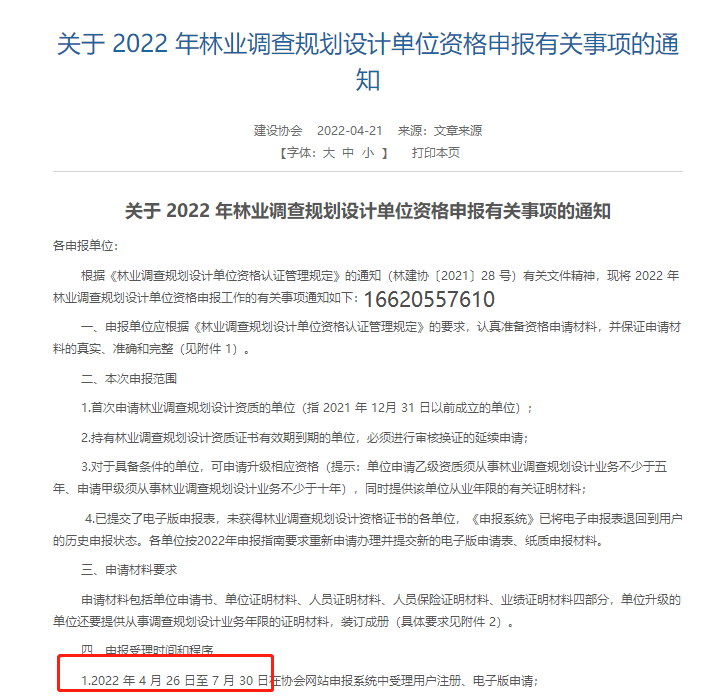 注意!!关于 2022 年林业调查规划设计单位资格申报有关事项的通知中系统截止时间为