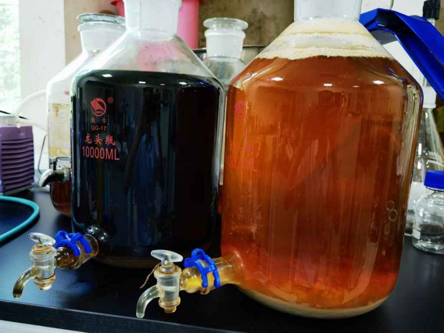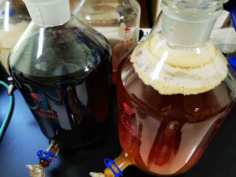 实验室内做的酵母菌/大米发酵滤液,取样检测后的剩余发酵液转入2个玻璃罐内储存,都加入了皂土进行澄清,其中一罐不小心染了杂菌(产香气的覆膜酵母),一段时间后两罐发酵液的颜色差异巨大,染杂菌的发酵液颜色变浅,澄清透亮,另一罐颜色较深。有没有大神了解是怎么回事的? 发自小木虫Android客户端 |