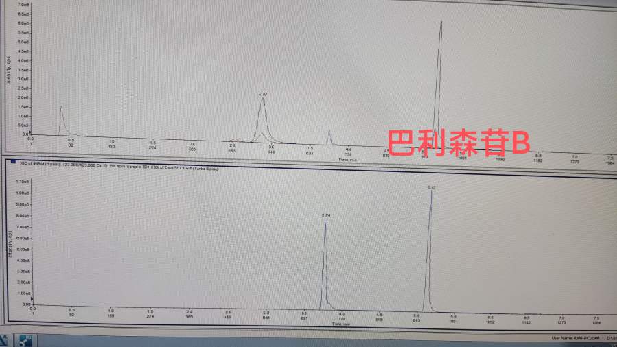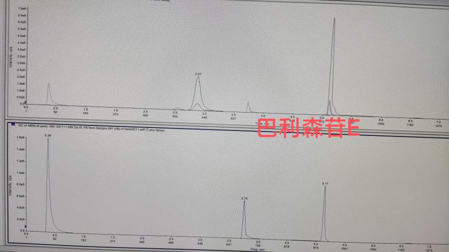 最近在用UPLC-Q-TOF-MS/MS做一个中药的化学成分分析,但是在跑混标的时候几个化合物老是分离不开,一共6个单标,一开始跑单标的时候每个单标都要在特定的流动相才能出来,比如水-甲醇,0.1%甲酸水-甲醇,0.5%甲酸-乙腈之类的,还有两个必须得用100%甲醇来配,其他的用50%甲醇就可以,反正过程很曲折,一开始只知道在流动相加酸,后来试了一下在谁系里加了一点氨水,6个单标就在0.05%氨水水-乙腈这一个流动相全跑出来了,但是在跑混标的时候好几个化合物出现了好几个峰,1.巴利森苷B和C永远都在一起出峰,2.巴利森苷A在巴利森苷B.C.E出峰的地方也要出峰,导致他一个就有三个峰,3.巴利森苷B.C在巴利森苷A处也出峰,导致他有两个峰,4.对羟基苯甲醇双峰。我在文献上看到的都是在酸性流动相就可以出来,不知道为什么我的酸性条件怎么都不行,求各位大佬指点,救救孩子![]() 全图.jpg HA.jpg PB.jpg PE.jpg@lifeliuyan |