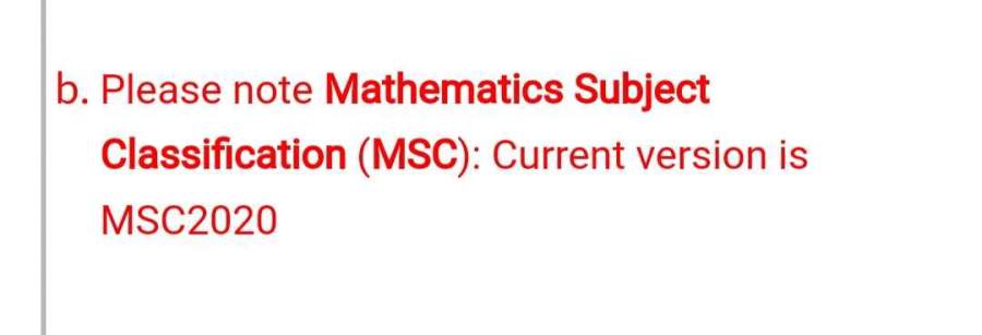 b.Please note Mathematics Subject Classification (MSC):Current version is MSC2020 发自小木虫Android客户端 |