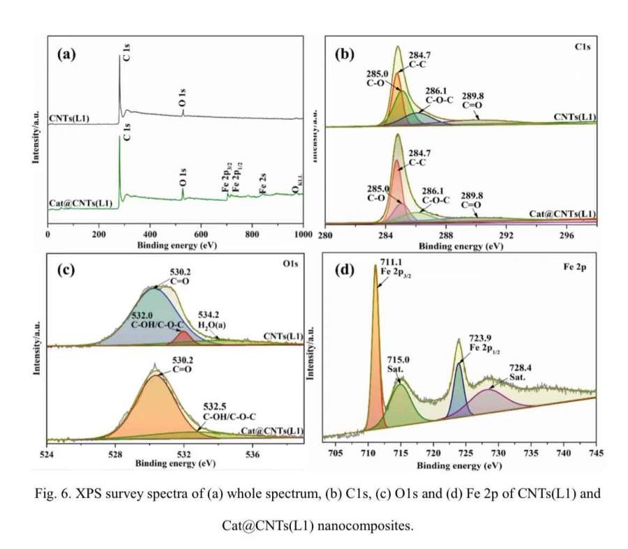 C and O 1s, and Fe 3p XP spectra in Figure 6 are incorrectly fitted. Please refit all XP spectra with a common FWHM for all core-level components of the same element. Please ensure that the intensity of the Fe 2p3/2 XP peak is locked at twice the intensity of the Fe 2p1/2 to comply with quantum mechanics. The refitted figure and resulting correct intensities of the fitted components must be updated in the manuscript before the paper can be accepted. 这是xps审稿人提的分峰问题,下面是我的问题和我做的图,想请教相关方向的大佬帮忙看看问题出在了哪里 发自小木虫Android客户端 |