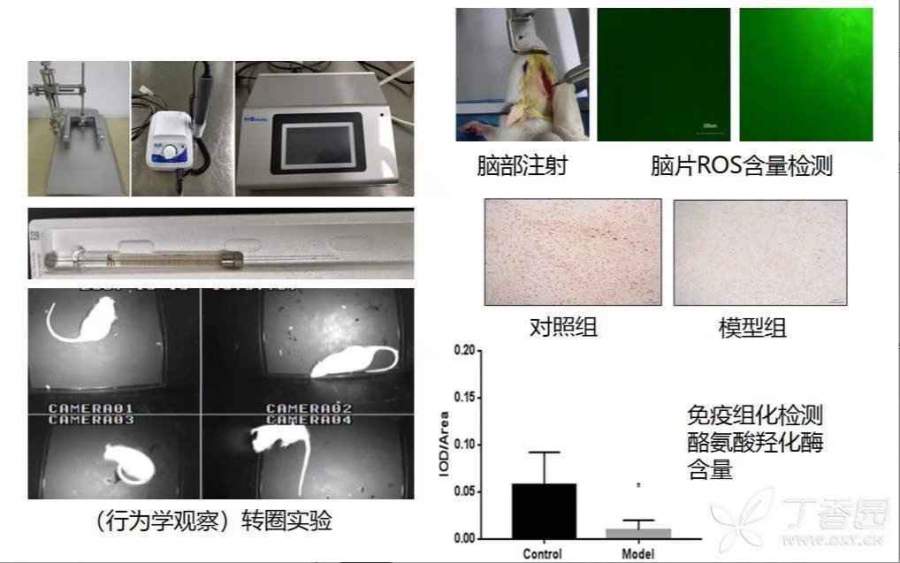 ?帕金森病(Parkinson's disease,PD)是一种常见的神经系统变性疾病,老年人多见,平均发病年龄为60岁左右,40岁以下起病的青年帕金森病较少见。我国65岁以上人群PD的患病率大约是1.7%。大部分帕金森病患者为散发病例,仅有不到10%的患者有家族史。帕金森病最主要的病理改变是中脑黑质多巴胺(dopamine, DA)能神经元的变性死亡,由此而引起纹状体DA含量显著性减少而致病。导致这一病理改变的确切病因目前仍不清楚,遗传因素、环境因素、年龄老化、氧化应激等均可能参与PD多巴胺能神经元的变性死亡过程。 目前建立PD动物模型的方法主要有两种:一种是将6-OHDA(6-hydroxydopamine)注入脑内黑质纹状体系统或内侧前脑束,损毁多巴胺能神经元,以制作大鼠、几内亚猪、猫、猴、鸟类等PD模型;另一种是用MPTP诱发灵长类动物(猴)和小鼠的PD模型。大鼠帕金森病模型制备方法如下: 大鼠于动物实验室适应性饲养7天,随机分成对照组和模型组,空白对照组6只,每隔2小时腹腔注射生理盐水,共注射4次,模型组6只,每隔两小时注射一次MPTP,共4次,给药剂量18 mg/kg。末次给药后24小时,麻醉后取样,取脑、心、肝、脾、肺、肾。 发自小木虫Android客户端 |