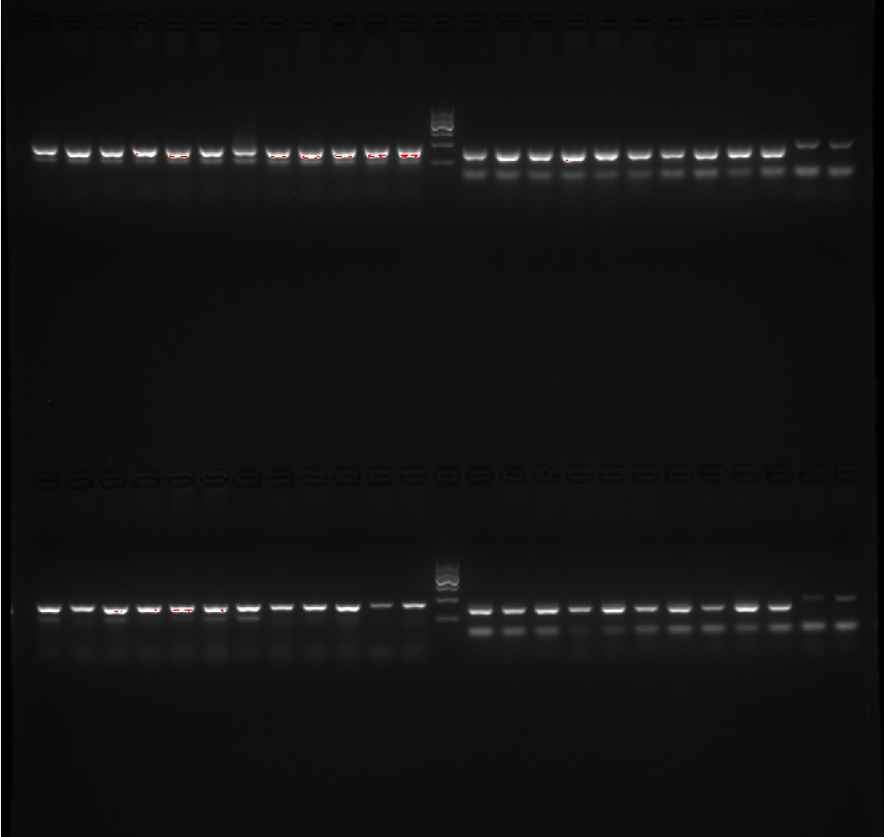 做小鼠的基因型鉴定,目的条带也能跑出来,但是用的600bp的marker总是跑不散,胶的浓度是2.5%,电压是120V,时间是25min。 发自小木虫Android客户端 |