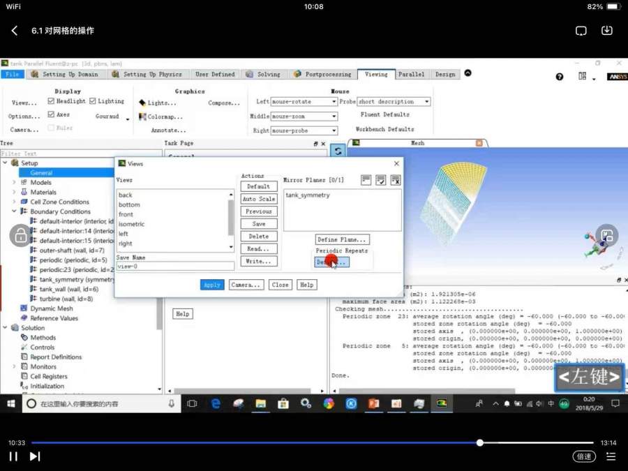 在做一个fluent旋转搅拌器算例,导入的模型是一个60度的模型。旋转对称,想要把它补全360度,但是找不到视频里14.0版本中的view-views-periodic repeat-define 选项,没有办法进行周期复制,有同学可以指点一下2022版本中在哪里设置吗