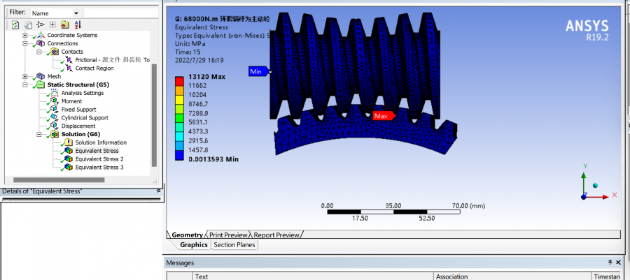 ansys对斜齿轮和环面蜗杆啮合面进行静态受力分析,出现了一些问题 已有1人参与