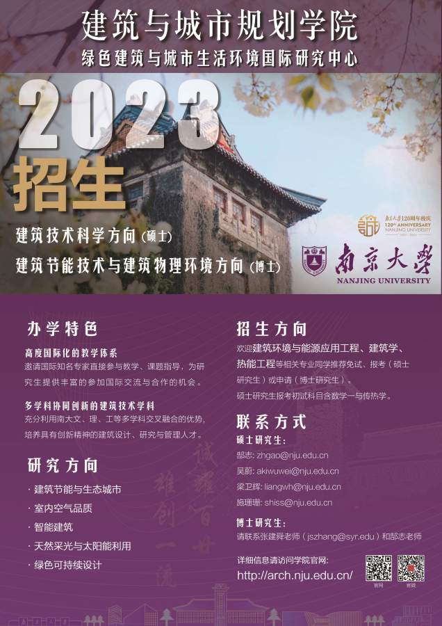 南京大学建筑与城市规划学院建筑技术科学方向招收博士生(及硕士生)