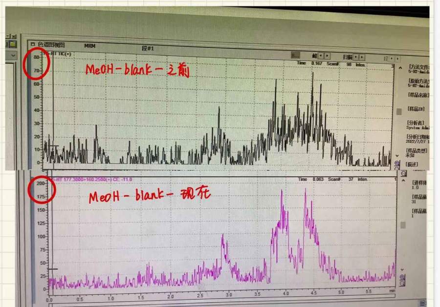 LC-MS/MS检测中空白对比之前响应信号增强,怎么办