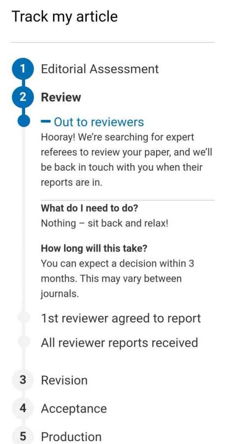 如图,显示第一个审稿人接受审稿后,很快又退回到原来的寻找审稿人状态,不知何意?难道接受审稿马上又拒绝了?这是什么操作...正常情况接下来,个人感觉应该一直停留在第一个审稿人接受的状态吧? 发自小木虫Android客户端 |
