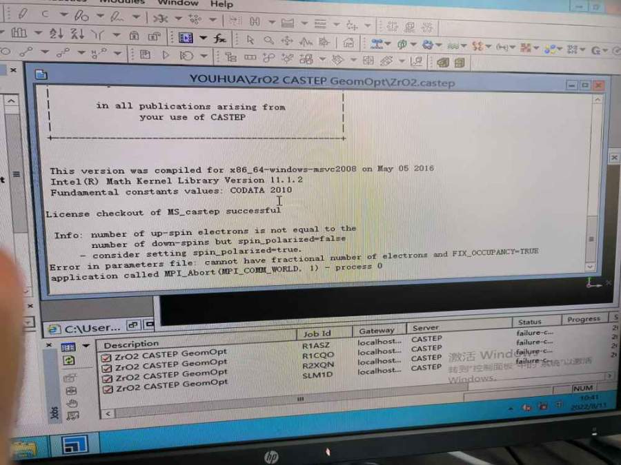 在用ms模块的castep计算金属掺杂金属氧化物时,一直显示优化失败,请问是怎么回事呢。有没有大神知道的 发自小木虫Android客户端 |