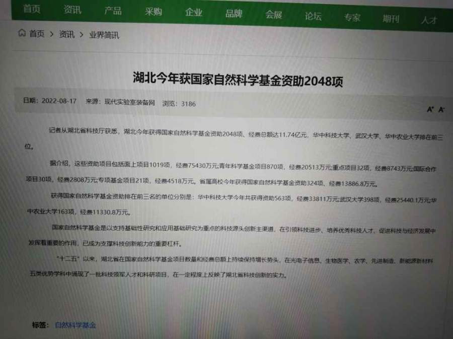 2022.8.17消息:湖北今年获国自科2048项 发自小木虫Android客户端 |