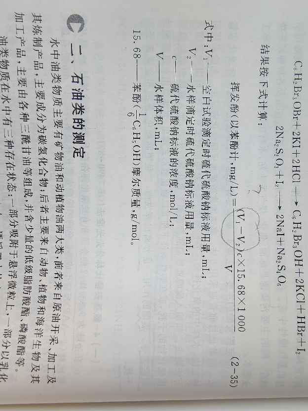 公式中为什么是V1-V2?我理解的是,滴定水样时消耗的硫代硫酸钠的量应该比空白实验多,那减去V2得到的应该是负值嘛? 发自小木虫Android客户端 |