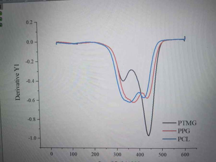 求教各位大神,分别以PPG,PTMG,PCL(分子量都是1000)为软段合成了三种聚氨酯,热重分析发现为什么PPG和PCL的失重速率更像,不应该和PTMG更像的吗?两者都是醚类软链段。是因为PPG侧链上的甲基使得相分离程度降低,软硬相混合导致的吗?