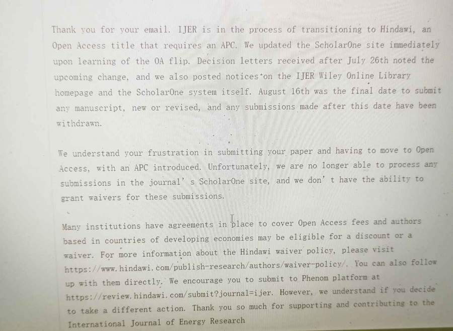 给了三个月修改的时间,结果突然发了一份这样的邮件,有点不明白他是什么意思?然后杂志主页原本提交修改件的选项现在不能提交了,他这个意思是说8月16之前的稿件,你要么就是投他说的Handawi杂志,要么就是重新投别的杂志吗? 发自小木虫Android客户端 |