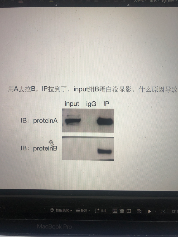 IP组显示拉到目的蛋白B了,但是input组蛋白B没有显影,是什么原因导致的? 发自小木虫IOS客户端 |