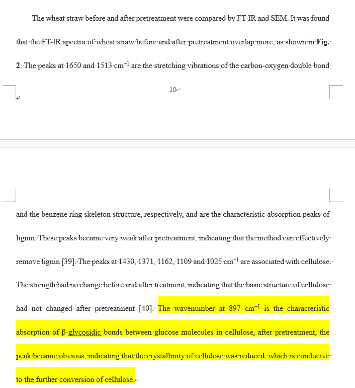 透射率越低表明引起这个峰的物质的含量变化越高,纤维素断开产生的糖键含量越高,也就是表明纤维素含量减少。纤维素是晶体物质,木质素和硅质类是无定形的,纤维素含量减少,结晶度变低,这样子应该可以解释通了。 发自小木虫IOS客户端 |