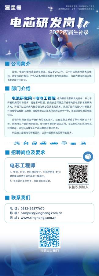 星恒电源股份有限公司,电芯研发岗位2022应届生补录