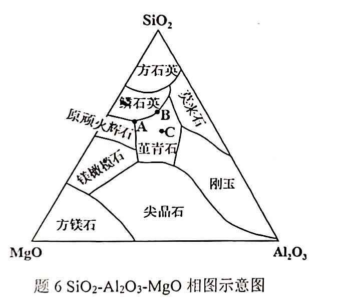 下图为 SiO2-Al2O3-MgO 相图示意图,欲在本系统中熔制玻璃,试分析玻璃配料应选择图中 A、B 和 C 三点中的哪个组成点,并说明理由。另外,从塔曼观点(成核和生长速率)出发说明什么样的熔体容易形成玻璃。 @chinaworm 发自小木虫Android客户端 |