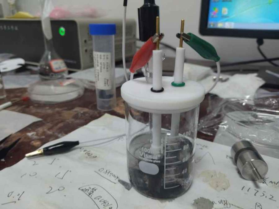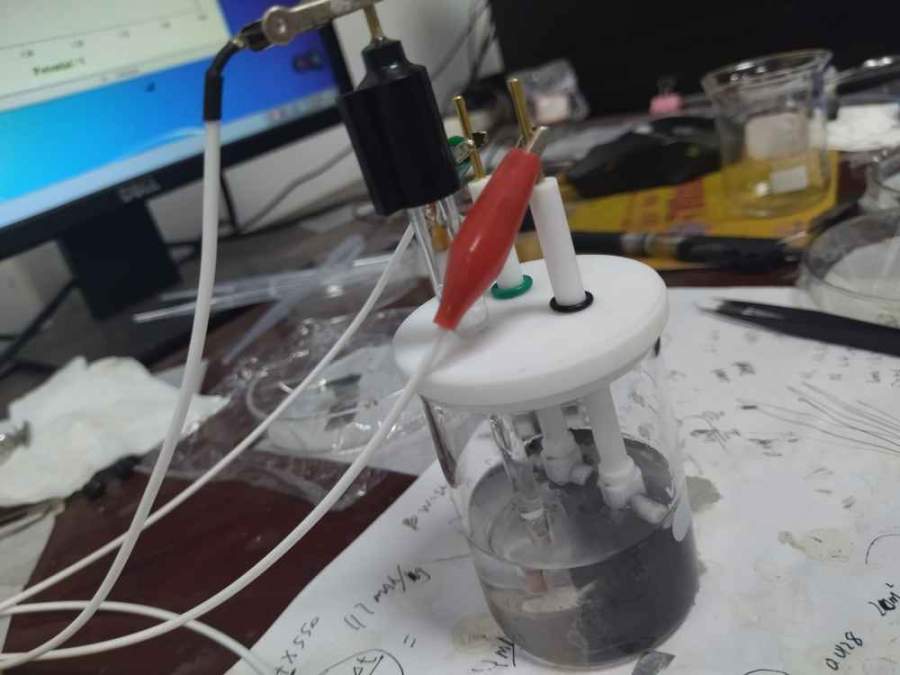 求助各位,本人用纯氧化锌电极作为工作电极、氢氧化镍电极作为辅助电极、饱和甘汞电极作为参比电极,电解液用饱和氧化锌的氢氧化钾溶液,在上海辰华电化学工作站三电极测试系统下做循环伏安测试,为什么一通电流氧化锌电极片就开始脱落活性物质,正负两极冒气泡开始电解水?如图所示,求解,是不是测试方法有问题呀? @Gamry-电化学 发自小木虫Android客户端 |