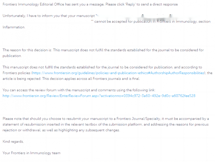 为什么我投稿frontiers一天秒拒? 已有6人参与