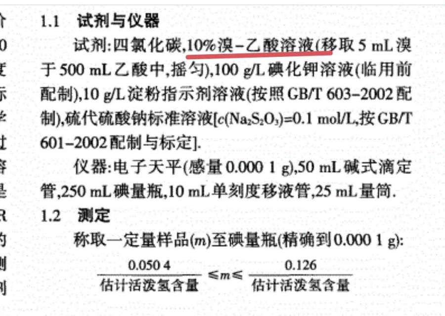 含氢量滴定用的10%溴-乙酸溶液的困惑已有1人参与