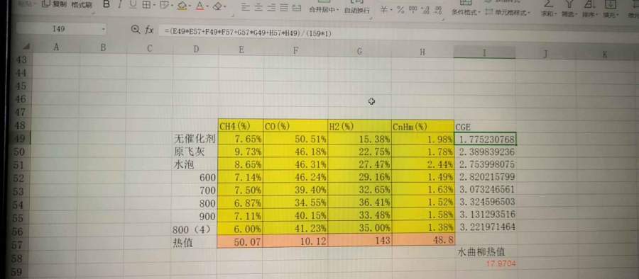 冷煤气效率计算