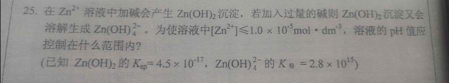 用Zn离子浓度=1.0^10的-5,用Ksp求出了一个小的ph,接着要怎么用K稳来求大的那个ph,求大佬帮个忙 @崇明先生 @jiagle @甄士隐207 @我想更懂你29 发自小木虫Android客户端 |