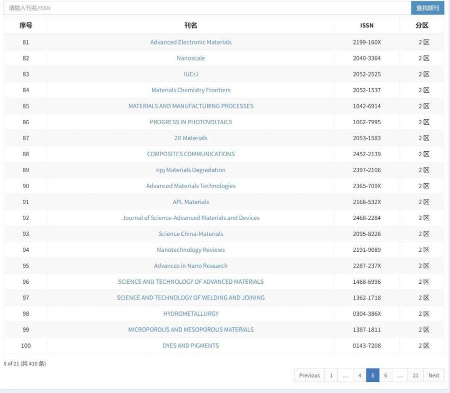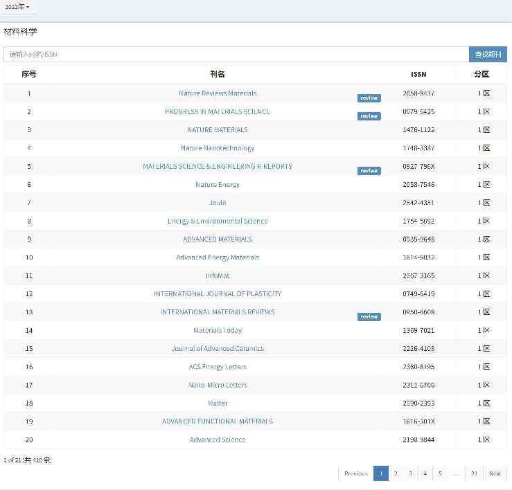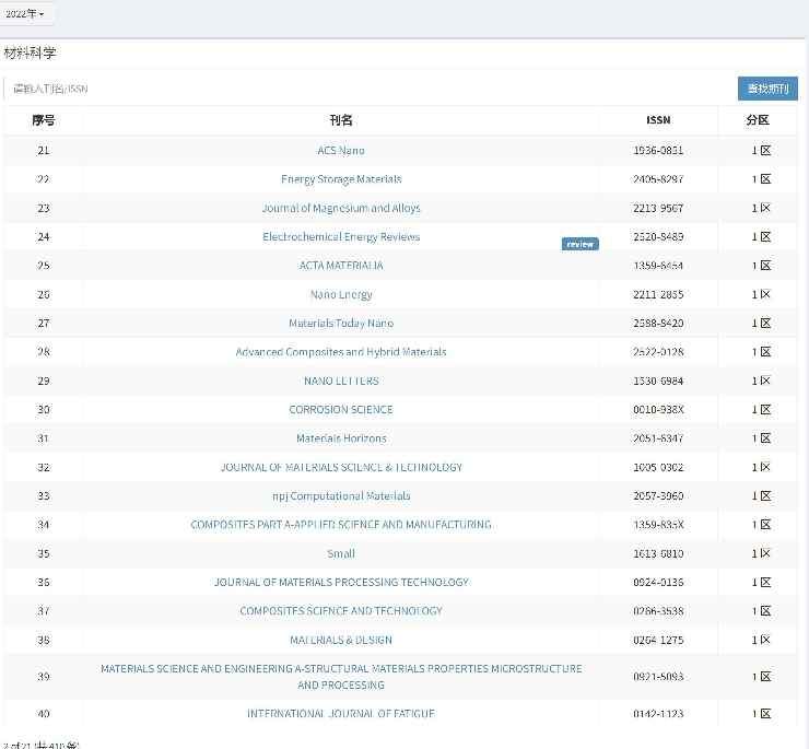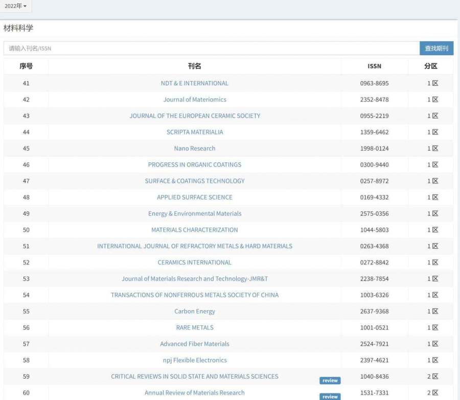 2022中科院期刊分区(材料科学类一区和二区)表共享 已有1人参与