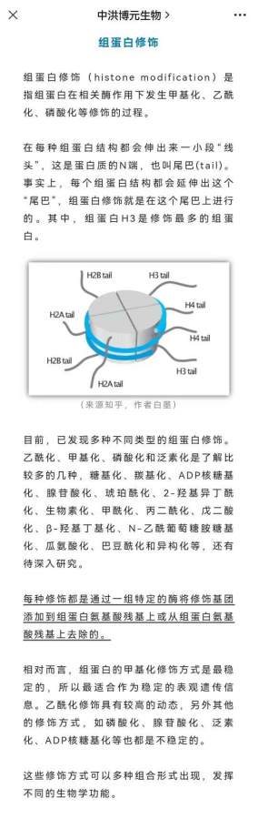 国自然热点:表观遗传修饰之组蛋白修饰 1、组蛋白的结构 2、组蛋白修饰 3、组蛋白修饰研究方法 4、组蛋白修饰研究方向 发自小木虫Android客户端 |