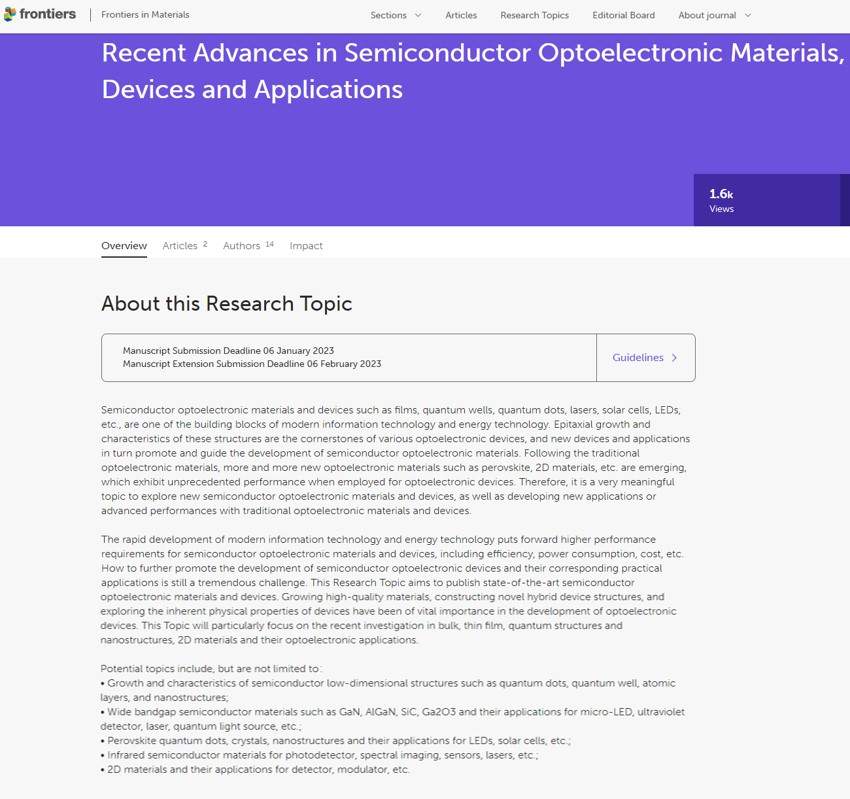 Frontiers in Materials(3.985/Q2)半导体光电材料、器件与应用专刊征稿!