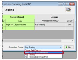 •切换到场追迹并选择“第二代场追迹”(Field Tracing 2nd Generation)作为仿真引擎。