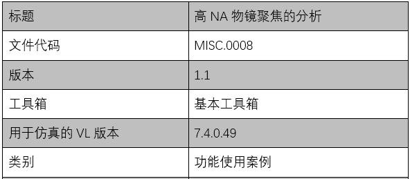 高NA物镜聚焦的分析