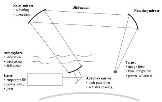 激光在大气湍流中传输时会拾取大气湍流导致的相位畸变,特别是在长距离传输的激光通信系统中。这种畸变会使传输激光的波前劣化。通过在系统中引入自适应光学系统,可以对激光传输时拾取的低频畸变进行校正,从而显著提升传输激光的strehl ratio。