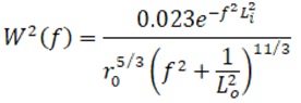 其中w2(f)是波阵面的光谱功率,r0为可视参数,f是空间频率,l0是外部尺寸,li是内部尺寸,这些参数的单位分别为rad,m,m-1。