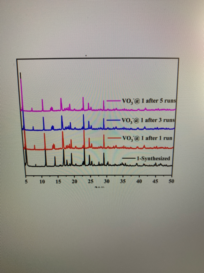 | MOF在偏钒酸根离子溶液中浸泡后,PXRD在12-15度和17-20度产生了新的衍射峰,该怎么解释呢? |