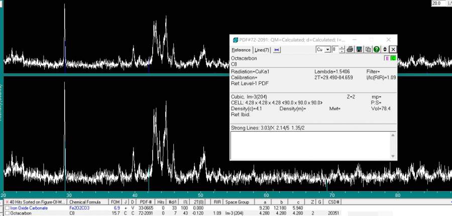 材料是渗碳过的不锈钢,主要元素是铁,铬,碳,可能还有氧。测出的xrd在30左右有一个比主要相还强的杂峰,有C8这种物质能勉强对上,但是按理说不该有这个相,请问有大佬知道是咋回事儿么?还有就是测的没渗碳过的基体在30度也有一个很微小的峰。 发自小木虫Android客户端 |