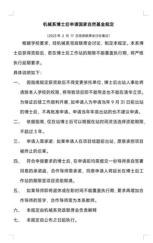 清华大学博士后申请青年基金必须做完才让出站已有1人参与