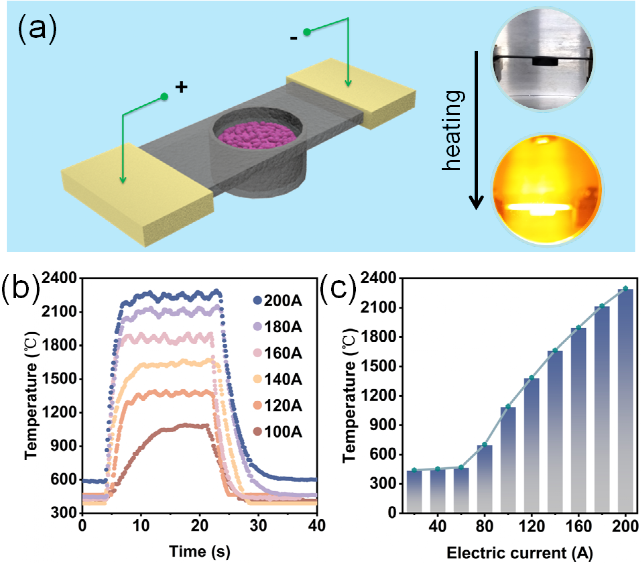 在此,研究者报告了一种方法,通过引入部分碳化纤维素作为碳基板,在其上合成NPs,制备了具有高表面覆盖的NPs材料。NPs的高表面覆盖度是由于部分碳化纤维素中有几个相互连接的芳香环,边缘位置众多,包括sp3碳-碳键。因此,研究者实现了前所未有的高表面覆盖的各种单一和铜(Cu)基多元合金NPs,并在大范围内具有均匀的粒径分布。此外,通过与典型CTS碳基板的比较,研究者证实了碳基板上的缺陷位点(氧和sp3键合C─C)的总和,决定了金属NPs的表面覆盖。此外,研究者还证明了具有高表面覆盖率的Cu NPs材料,可以在连续流电池中使用气体扩散电极(GDE)进行电催化CO2还原反应(CO2RR)。相对于反氢电极(RHE),在−0.529 V电位下,纤维素/碳纸(Cu/纤维素/CP)上的Cu NPs,具有48.92%的乙烯选择性,在10 M KOH电解质中反应30小时以上的稳定性。该研究展示了纤维素,如何使金属NPs具有高的表面覆盖,这为金属NPs和多组分NPs应用于更多样化的应用开辟了可能性。 "碳热冲击法" 设备contact 176-022-88497 Tom