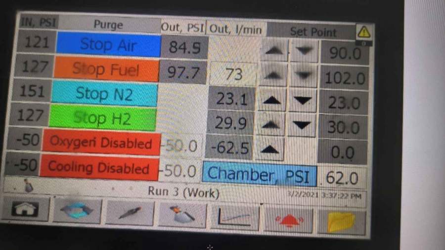 a high velocity air-fuel spray and blast system (AcuKote, USA) ,有朋友知道这上面的空气流量,燃料流量,氮气和氢气流量是哪个吗?是左手边的还是右手边的还是中间的?out的第二列单位是L/min吗? 发自小木虫Android客户端 |