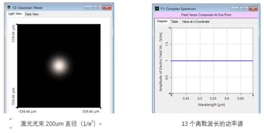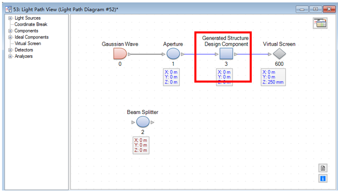 8) 建立一个高斯光束,修改光束直径以及波长参数,在DOE元件的基础上建立光路图