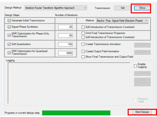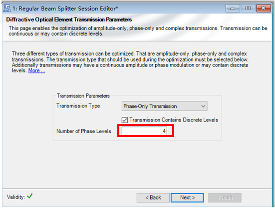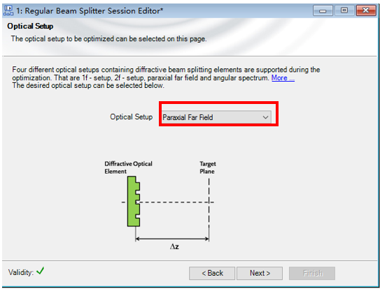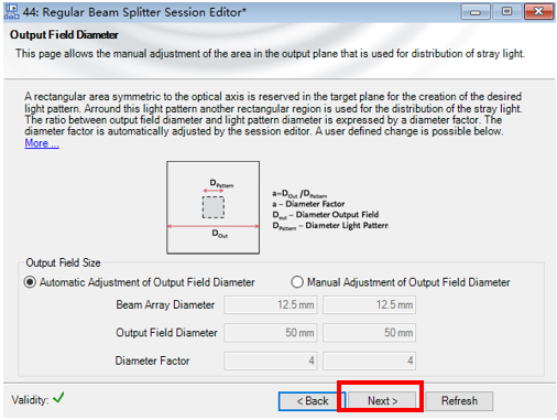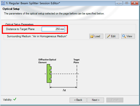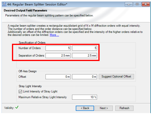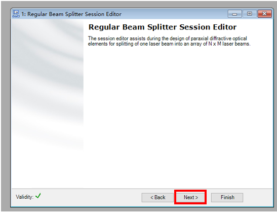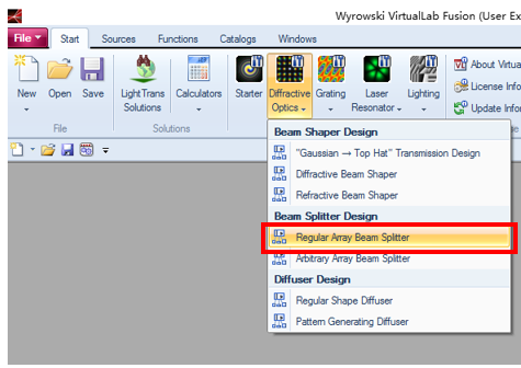 1) 点击Start→Diffractive Optics→Regular Array Beam Splitter以进入规则分束器设计会话编辑界面。