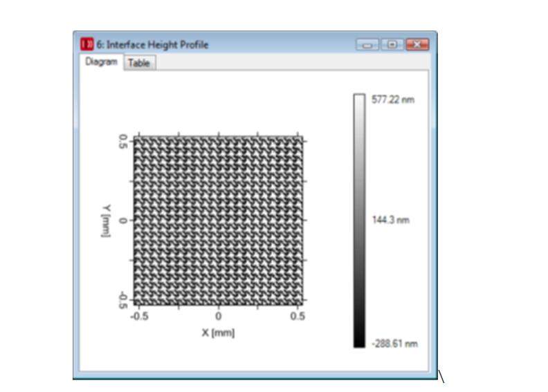 此案例介绍了如何使用VirtualLab Fusion 的双界面元件来模拟一个衍射光束分束器元件。表面轮廓是由离散高度采样定义的。因此,我们将使用采样界面来进行模拟。