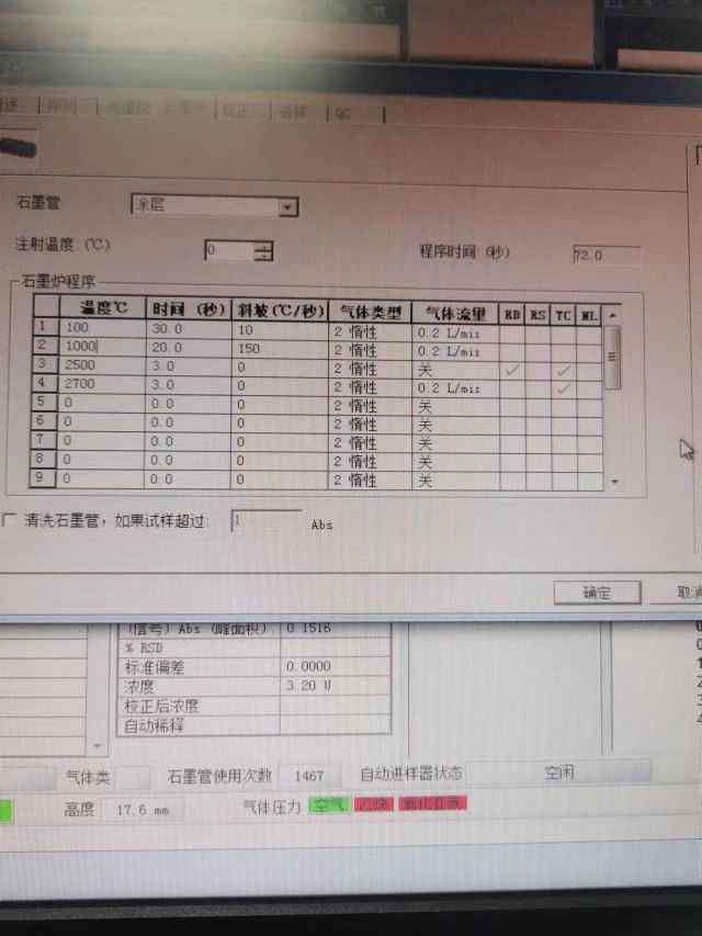 感谢回复! 我们所用的基体改进剂用量是5μl,不过浓度是5%。不知道是不是就是这里出了问题,我们明天配置2%浓度的磷酸二氢铵再试一次。 这是我们设置的温度及得到的数据,我们测出的标准曲线数值和我们之前以前做出的曲线相比高出龙1-2倍。 麻烦您看一下,非常感谢。 发自小木虫Android客户端 |