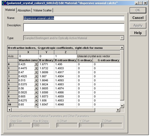 尽管这个模型中的方解石有两个方向,但只需要创建一种方解石材料,定义透镜材料的方向为快轴沿全局坐标系的z轴方向。