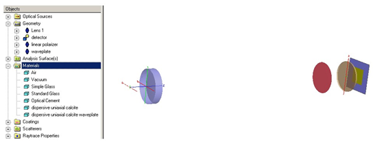 现在开始建立几何模型,这里包括一个由方解石做的平凸透镜,后面接着是一块方解石波片、一个线性偏光器和一个收集面。