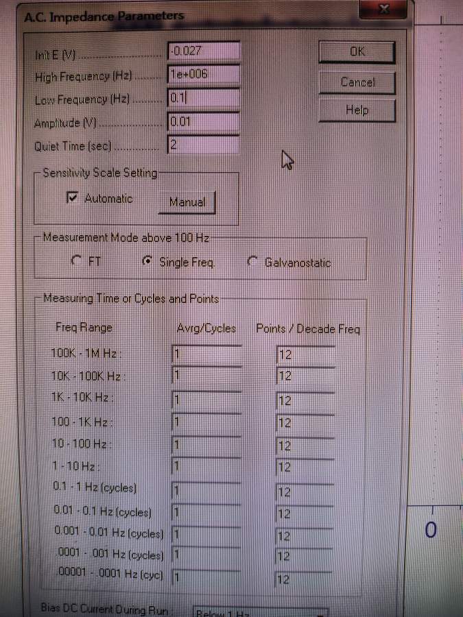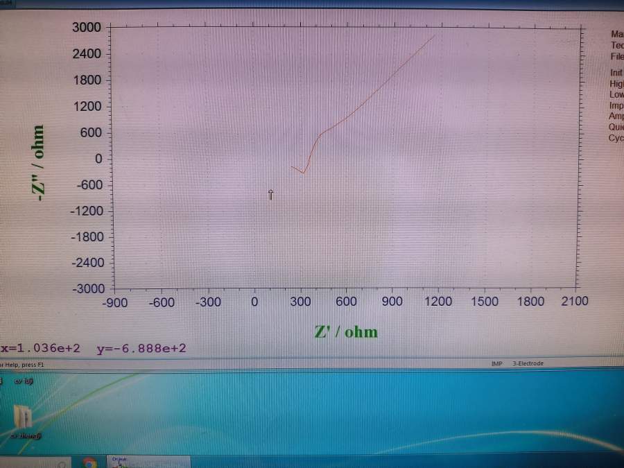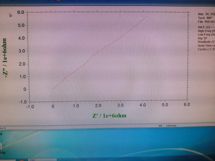 求助各位大佬,我的固态电解质两面涂上导电银胶后测试阻抗,跑成下面这种情况了,只有一条长长的直线,唯一的一小丢高频弧线还在第四象限,这种情况可以拟合吗?该怎么计算它的电阻值呢?怎么计算离子电导率呢? IMG_20230330_194453.jpg IMG_20230330_201439.jpg IMG_20230330_201515.jpg IMG_20230330_202125.jpg |