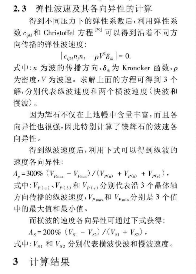 弹性波速各项异性的计算