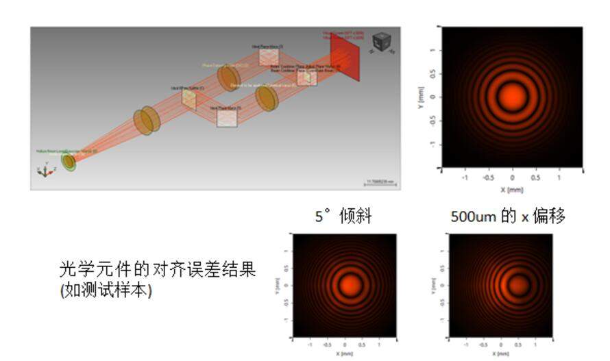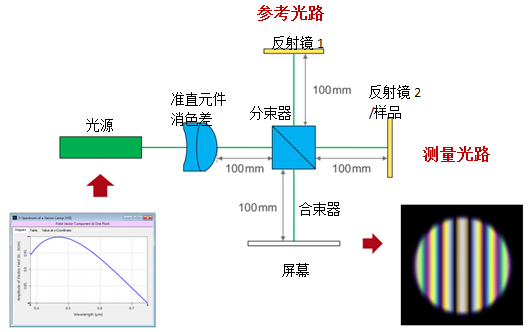 VirtualLab Fusion 软件可以对光学测量系统进行仿真,如干涉仪、光谱仪以及表面测量器件。 很多光学测量原理都是基于光的波动特性。典型的器件有: 干涉仪 光谱仪&单色仪 表面计量系统 VirtualLab Fusion 软件可以对这些测量系统进行仿真及公差分析。许多设置都是以衍射效应、干涉效应以及时间和空间相干性为特点。VirtualLab的场追迹引擎进行快速精确的测量系统建模的同时考虑了这些物理光学效应。 VirtualLab Fusion软件的特性: 基于物理光学的计量系统仿真 包含部分相干和衍射效应 尤其对倾斜和偏移的公差分析 真彩色获取 便于使用的位置概念 干涉条纹的计算 测绘扫描系统的仿真 全谱段高分辨率分析 用于表面拓扑测量的白光迈克尔逊干涉仪的仿真。整个系统中部分相干的白光可以利用VirtualLab Fusion仿真。 试用软件和应用示例: 如果对更多信息感兴趣,请通过 support@lighttrans.com 或通过VirtualLab Fusion试用版结合我们提供的应用示例开展你的实验工作: MSY.0001: 使用相干光的马赫泽德干涉仪仿真。(download) MSY.0002: 白光迈克尔逊干涉仪的仿真。(download) MSY.0003: Czerny-Turner单色仪和光谱仪。(download) 立即下载VirtualLab Fusion试用版 测量系统(MSY.0001 v1.1) 相干光马赫泽德干涉仪的仿真 应用示例简述 1. 系统说明 光源 — 氦氖激光器(波长632.8nm;相干长度>1m) 组件 — 分束器和合束器,消色差准直透镜系统,位相延迟器,待测球面透镜 探测器 — 干涉条纹 建模/设计 — 光线追迹:初始系统概览 — 几何场追迹加(GFT+): 由于白光的部分相干性致使条纹对比度降低。 在高度扫描的同时光强发生改变。 2. 系统说明 3. 建模/设计结果 4. 总结 马赫泽德干涉仪的干涉图样的计算 1. 仿真 以光线追迹对干涉仪的仿真。 2. 计算 采用几何场追迹加引擎以计算干涉图样。 3. 研究 不同对齐误差在干涉图上的影响,如倾斜和偏移 利用VirtualLab软件可对马赫泽德干涉仪生成的干涉图案进行研究分析。 测量系统(MSY.0002 v1.1) 白光迈克尔逊干涉仪的仿真 应用示例简述 1. 系统说明 光源 — 氙气灯(部分相干白光) 组件 — 分束器和合束器,消色差准直透镜系统,平面反射镜,待测绘样品 探测器 — 表现出不同的干涉效应的强度分布 建模/设计 — 光线追迹:初始系统概览 — 几何场追迹加(GFT+): 由于白光的部分相干性,条纹的对比度降低了 当进行高度扫描时,光强发生了变化 2. 系统说明 3. 建模/设计结果 4. 总结 研究了迈克尔逊干涉仪装置白光干涉图案并应用于高度轮廓扫描 1. 仿真 用光线追迹对干涉仪的仿真。 2. 计算 采用几何场追迹+引擎以计算干涉图样。 3. 研究 测绘扫描仪的仿真和样本高度轮廓的测量 利用VirtualLab软件可对迈克尔逊干涉仪生成的干涉图案进行研究分析。 测量系统(MSY.0003 v1.1) Czerny-Turner单色仪&光谱仪的仿真 应用示例简述 1. 系统说明 光源 — 参考平面波(单色) — 钠灯(具有钠的双重特性) 组件 — 光阑(狭缝),抛物面反射镜,闪耀光栅 探测器 — 功率 — 视觉评估 建模/设计 — 光线追迹:初始系统概览 — 几何场追迹+(GFT+): 窄带单色仪系统的仿真 为解决特定光谱曲线进行全光谱的高分辨率分析 2. 系统说明 3. 系统参数 4. 建模/设计结果 总结 Czerny-Turner单色仪的实现与分析及其在光谱研究中的应用。 1. 仿真 以光线追迹对单色仪核校。 2. 研究 应用经典场追迹和几何场追迹+引擎对系统的性能进行研究。系统分析中包括采用傅里叶模态法进行光栅效率的严格分析。 3. 应用 应用现实的Czerny-Turner单色仪分辨了钠灯的双波长特性 可以通过使用VirtualLab对复杂的光谱系统,比如Czerny-Turner进行详尽的研究。 5.12.png |