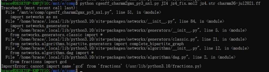 求大佬指点,gromacs小白,在官网跟着教程,熟悉复合物的流程中这一步做不下去一直报错。python的版本和networkx的版本和gromacs中使用的代码一致,不过我好像安装了两个python,cmd查找的python版本和gromacs上查的python版本不一致,但都是3.多,不知道会不会有影响。因为我net workx的版本和python的版本不只有一个,所以我从cgenff网站上把那些都下载了下来,一个版本一个版本对应着去尝试,结果还是报同样的错。 @smutao @oxox6085 发自小木虫Android客户端 |